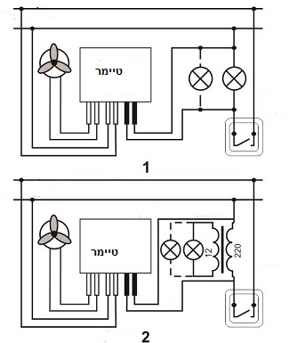 הפעלה לאחר דקה, נכבה לאחר 5 דקות אוורור בחדר האמבטיה